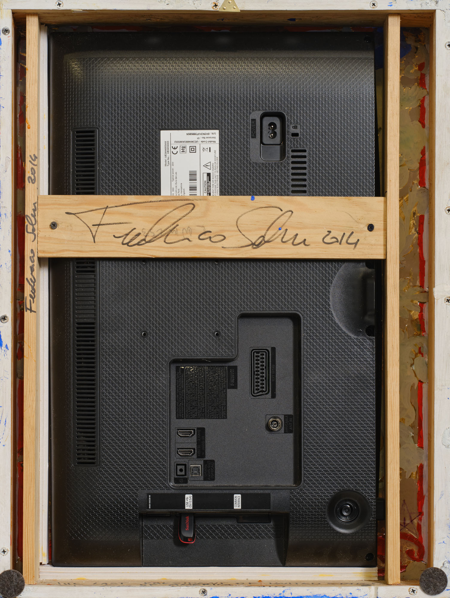 Acrilico e foglia d'oro su plexiglas e legno, video su TV LED, cm 61 x 46