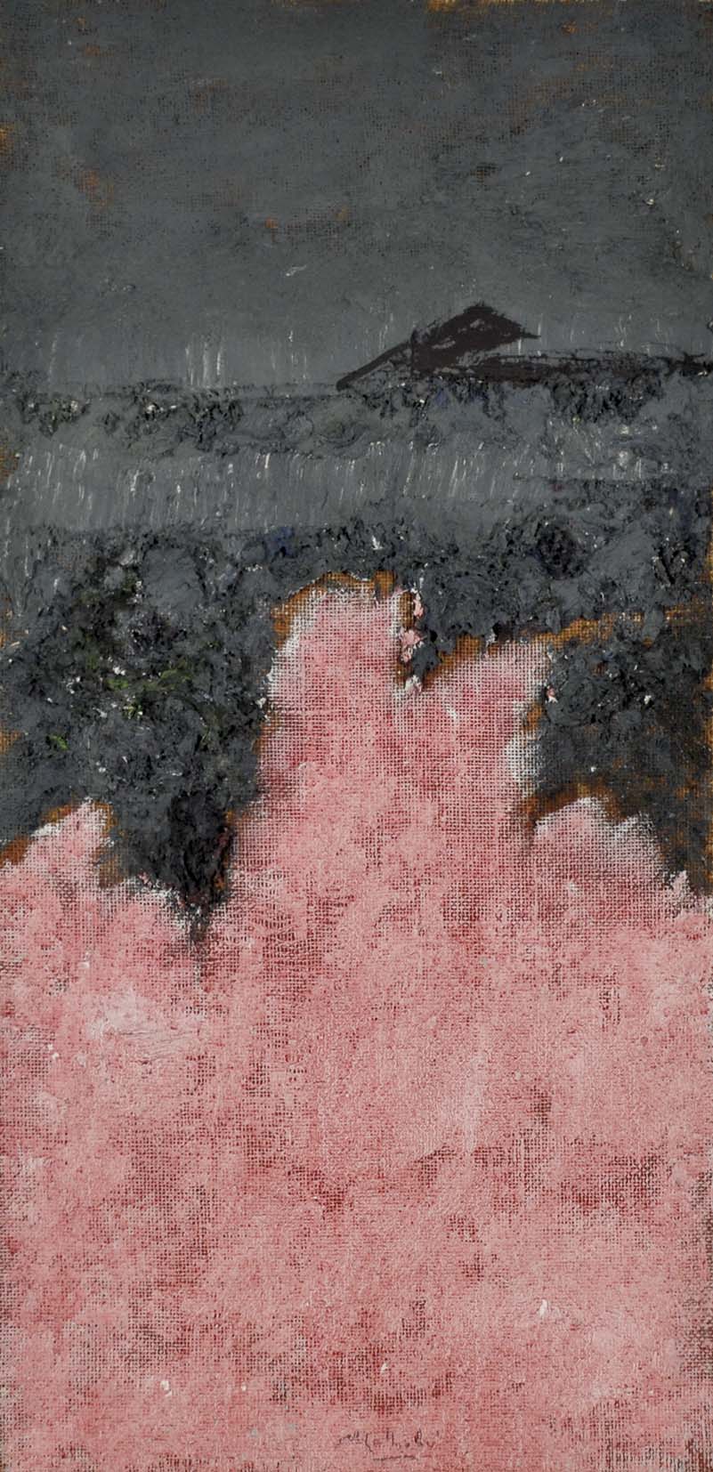 MATTIOLI CARLO Modena 1911 - Parma 1994 Spiaggia 1988 olio su tela 68x33 firma data e titolo al retro