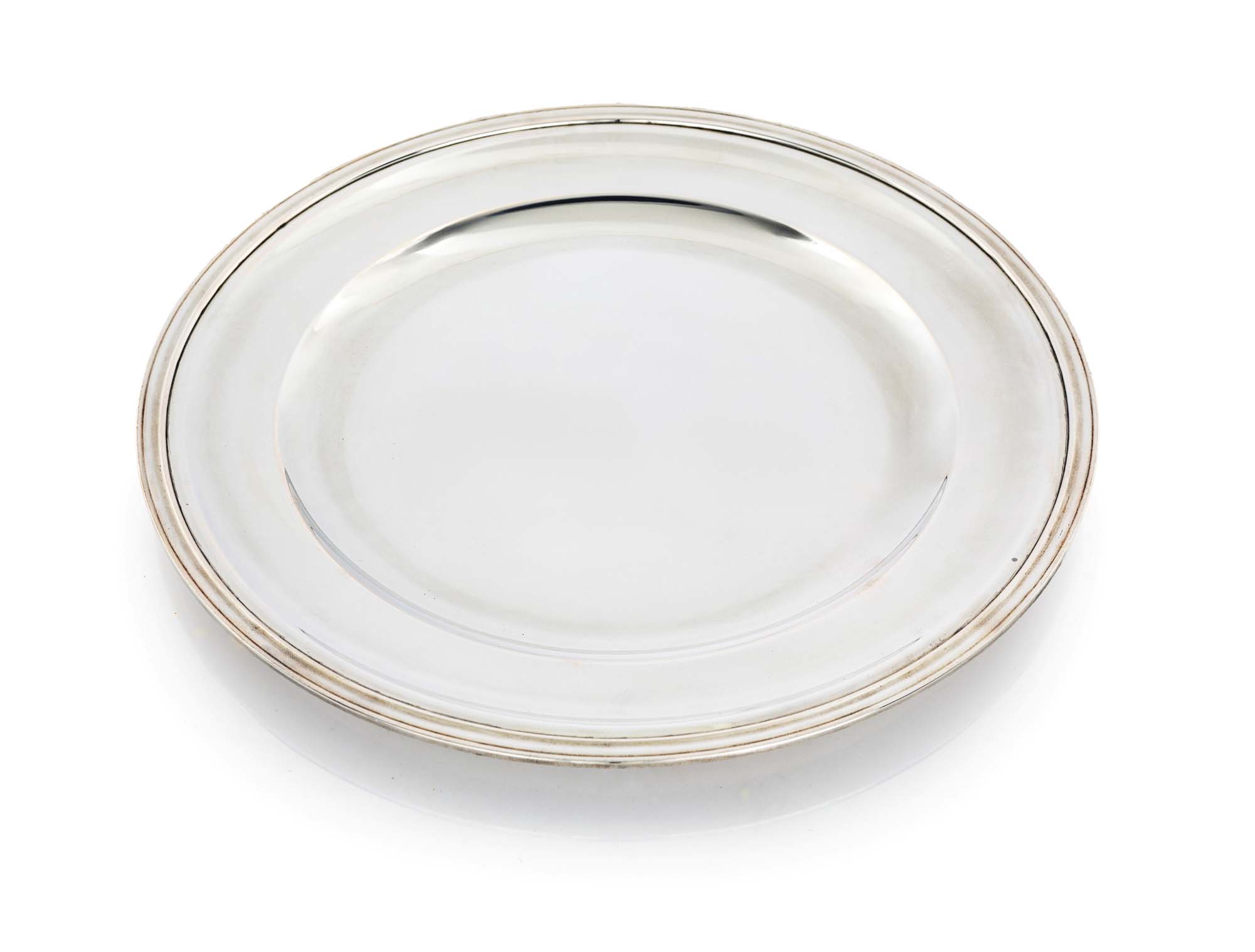 Piatto circolare in argento 800/000 orlo modanato diametro cm 27,8 - gr. 426