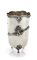 Bicchiere in argento 800/000 corpo cilindrico a superficie liscia caratterizzato da due piccole figure scultoree di amorino idealmente sedute su una nervatura applicata; orlo sagomato, piedi incurvati cm 12x7 - gr. 138