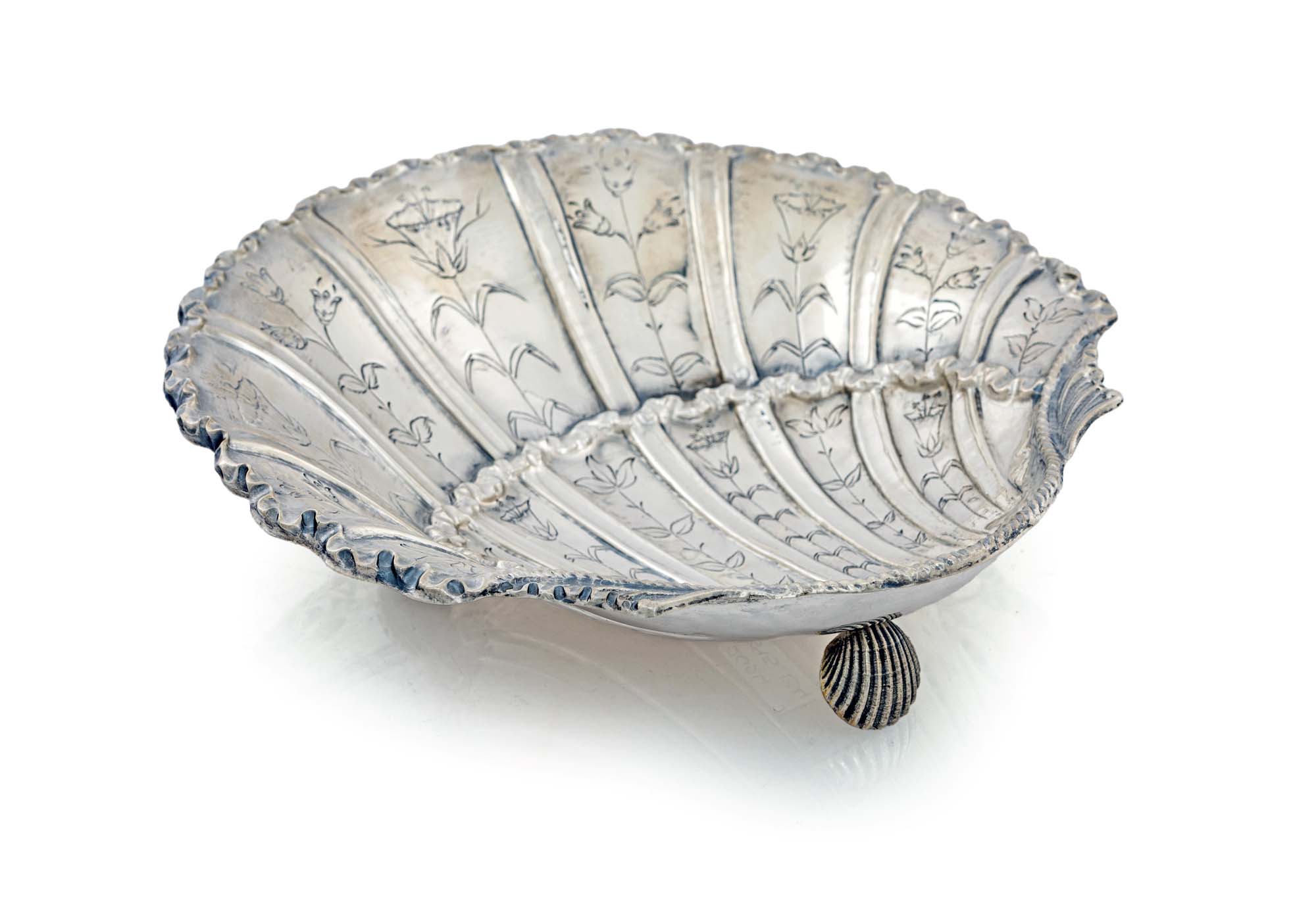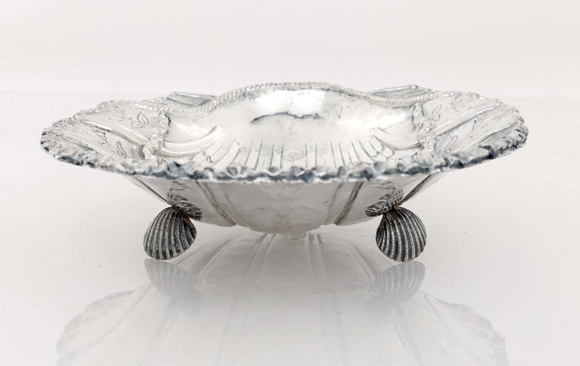 Alzatina a forma di conchiglia con esili steli fioriti incisi cm 7x25x24 - gr. 312