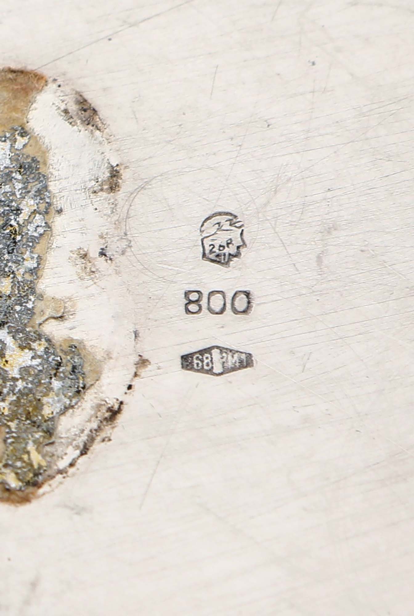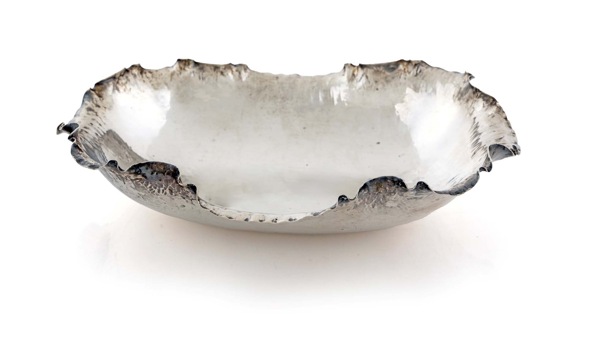 Vaschetta centrotavola in argento 800/000 di forma ovale con orlo ondulato e...