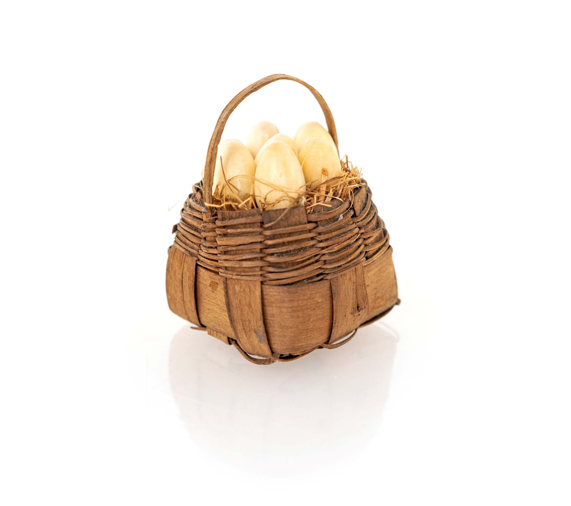 Lotto 1 | Cestino con sette uova cm 6x3,5 Collezione Antonio Latini, conte di Collalto...