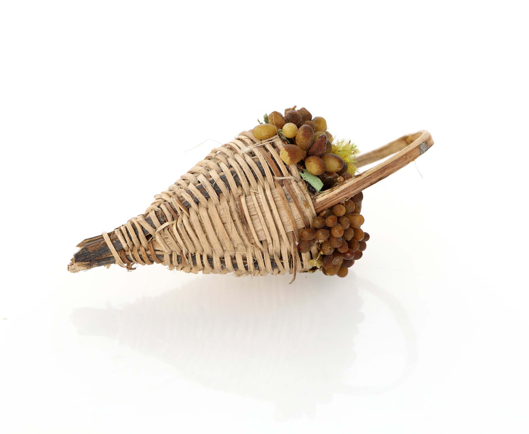 Cesta a cornucopia con uva in cera cm 9,5x4 ca Collezione Antonio Latini, conte di Collalto Sabino