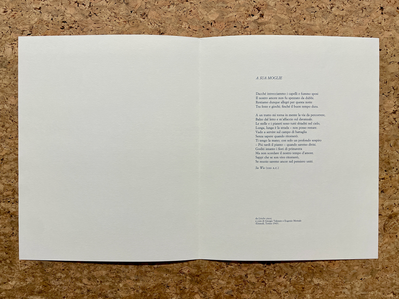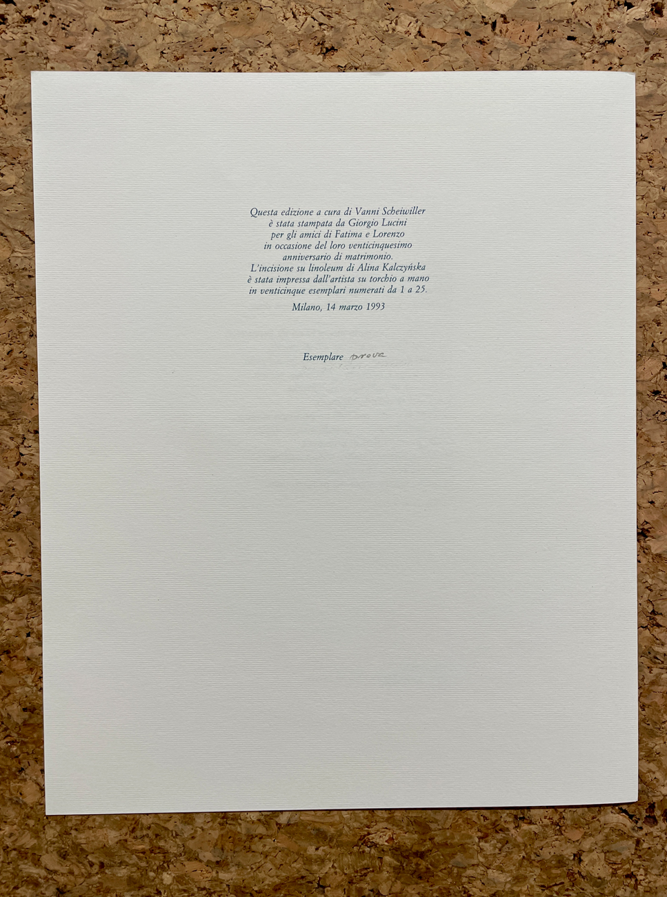 Edizione limitata di 25 copie a cura dello Stampatore Giorgio Lucini