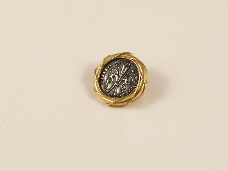 FERMAFOULARD IN ORO 18 KT E ARGENTO - SILVER AND GOLD 18 KT STOPS SCARF Torrini Firenze impreziosito da riproduzione di fiorino in argento, utilizzabile anche come pendente gr 6,7
