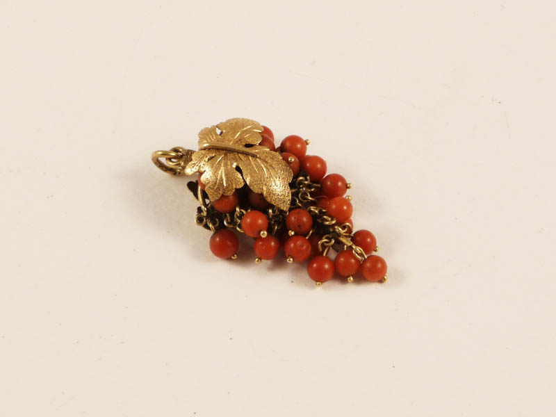 CHARM MODELLATA A GRAPPOLO D'UVA CON CORALLO E ORO 18 KT - ONE BUNCH CHARM WITH CORAL AND GOLD 18 KT gr 12