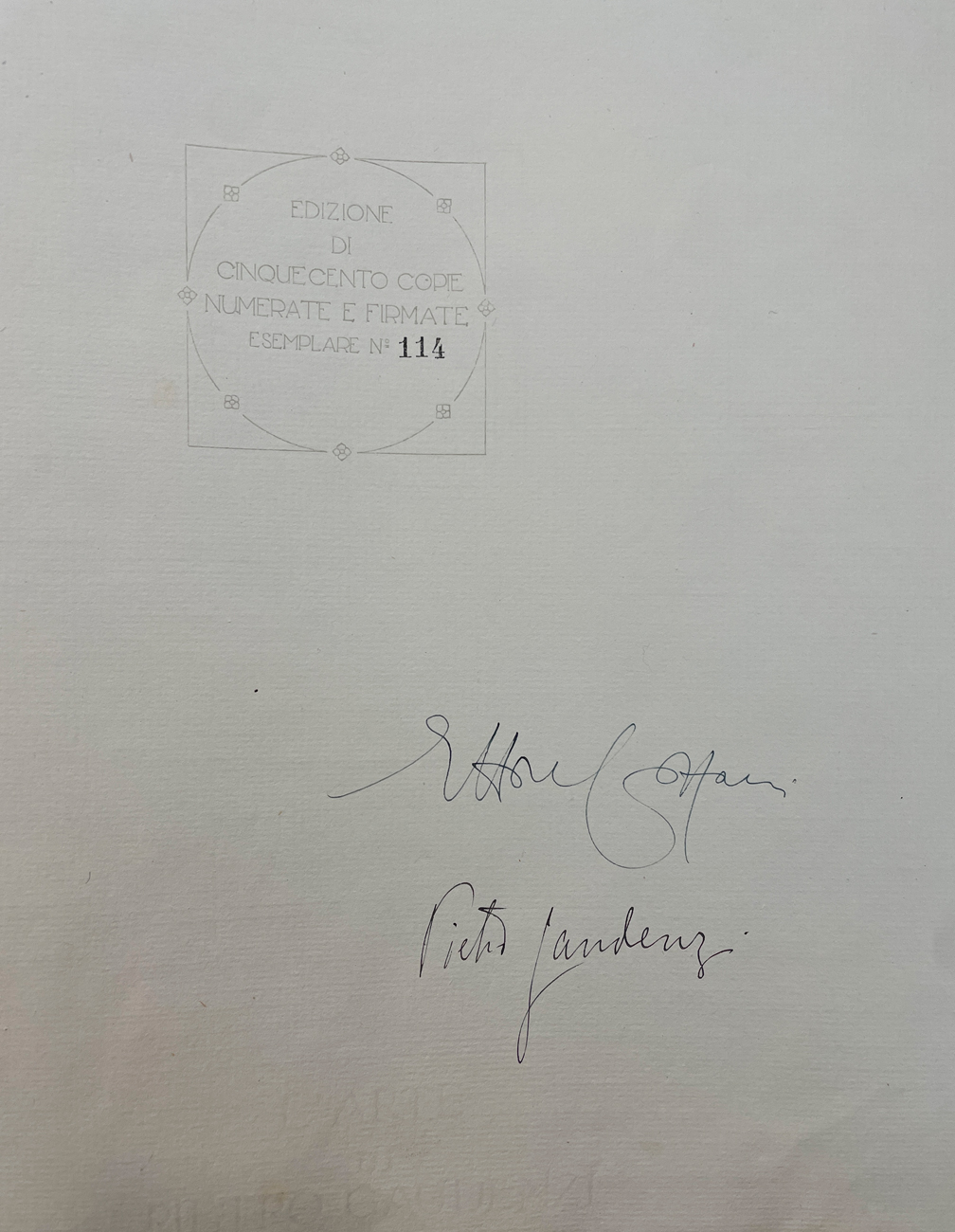 Edizione di 500 copie numerate e firmate da Pietro Gaudenzi e Ettore Cozzani (Esemplare 114)