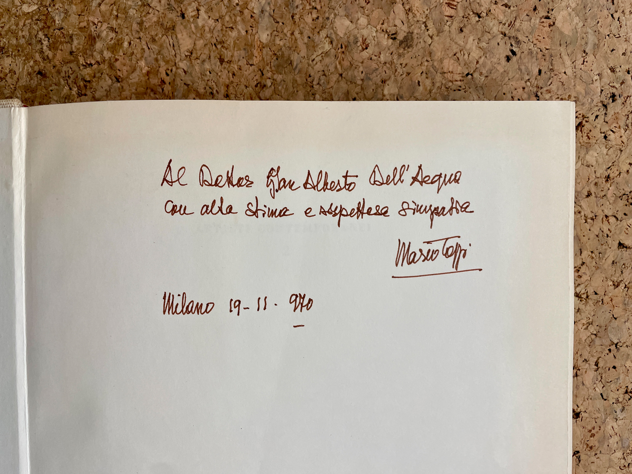Reca firma di Mario Tozzi e dedica ad personam datata 19/11/1970 all'interno