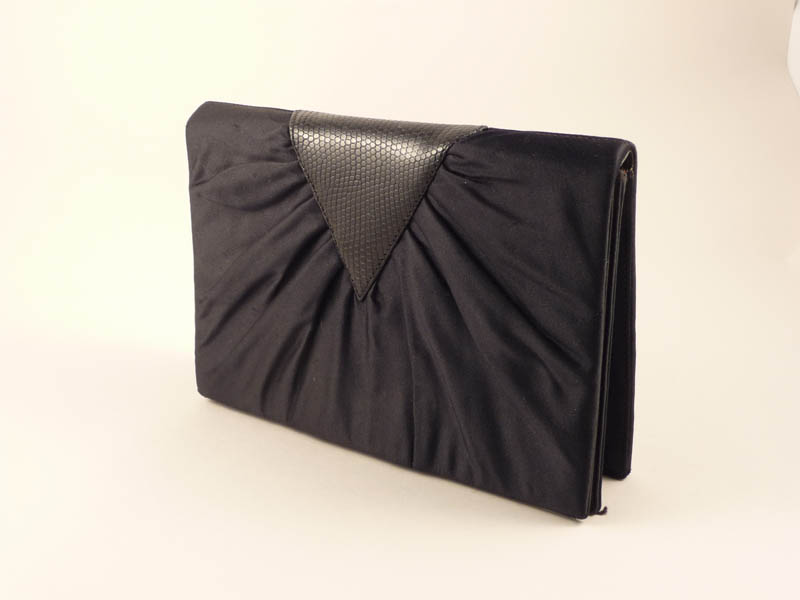 POCHETTE DA SERA IN RASO NERO CON DETTAGLIO A V IN PELLE STAMPATA - EVENING...