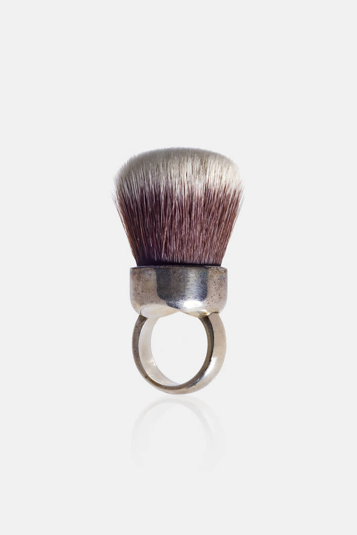 Particolare anello in argento 925/1000, eseguito da Franco Mello a forma di pennello con setole in vero pelo.