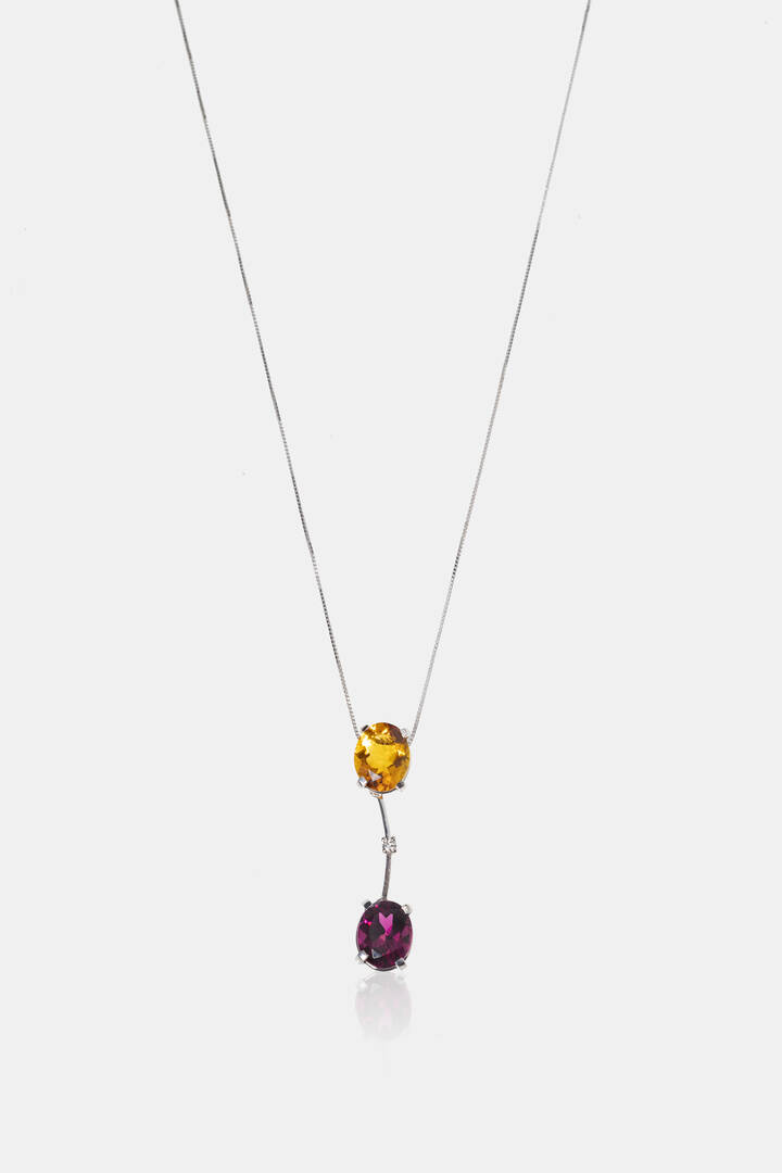 in oro bianco con quarzo citrino e tormalina rosa taglio ovale. Un diamante taglio brillante di ct 0,02 ca