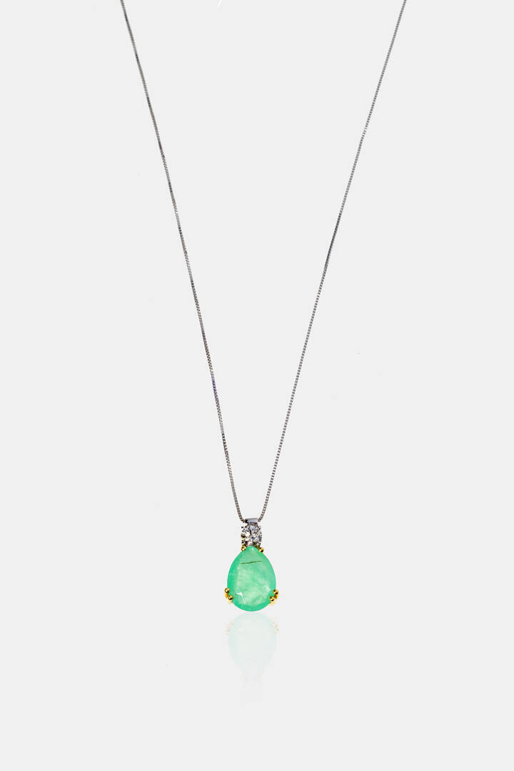 in oro bianco con smeraldo taglio a goccia di ct 3 ca, sormontato da un diamante tagli brillante di ct 0,20 ca