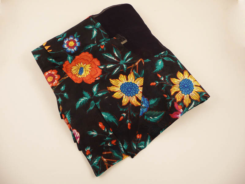 GRANDE STOLA IN SETA NERA BORDATA DA MOTIVO FLOREALE - BLACK STOLE WITH...