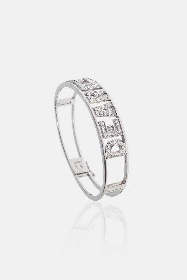 Bracciale rigido in oro bianco, firmato "Capello", recante la scritta in diamanti taglio brillante "Dearest"