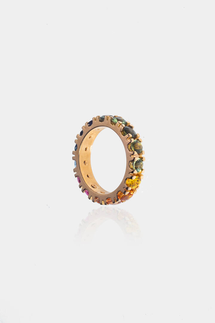 in oro rosa con zaffiri rainbow per totali ct 4,60 ca