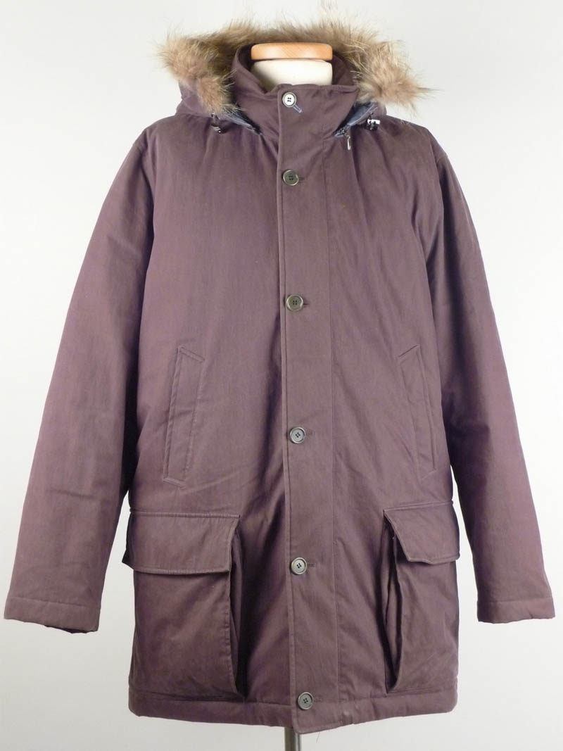 GIACCONE MARRONE DA UOMO IN PIUMA D'OCA - MEN'S GOOSE PLUME COAT Schneiders cappuccio bordato di pelliccia tg 54