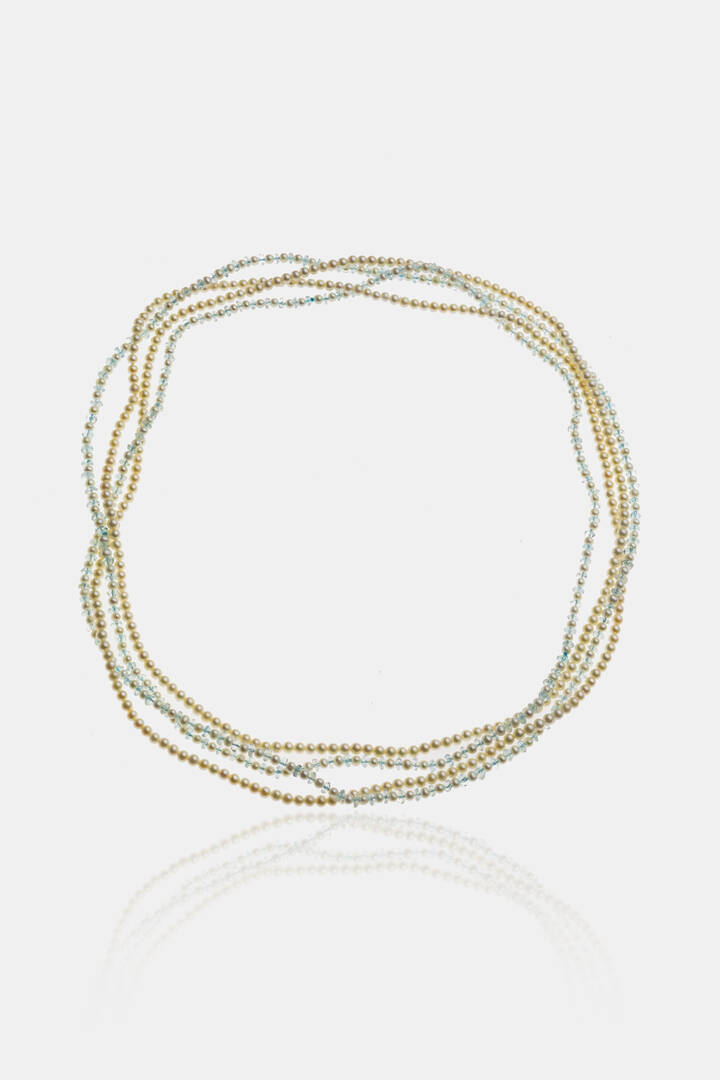-un filo di perle giapponesi da 3 mm alternate a dischi di acquamarina