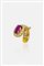 in oro giallo, sommità a serpente, con testa e spire in diamanti taglio brillante per totali ct 1,30 ca, probabile colore G-H, purezza IF-VVS. Al centro tormalina rosa