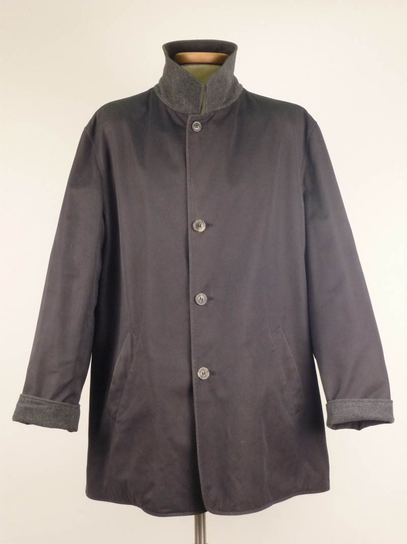 CAPPOTTO DA UOMO BLU NOTTE IN LANA E CACHEMIRE REVERSIBILE - MEN'S BLUE WOOL...