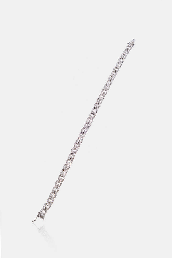 in oro bianco, lavorata a maglia groumette con pavé di diamanti taglio brillante per totali ct 1,32 ca, probabile colore G-H, purezza VVS