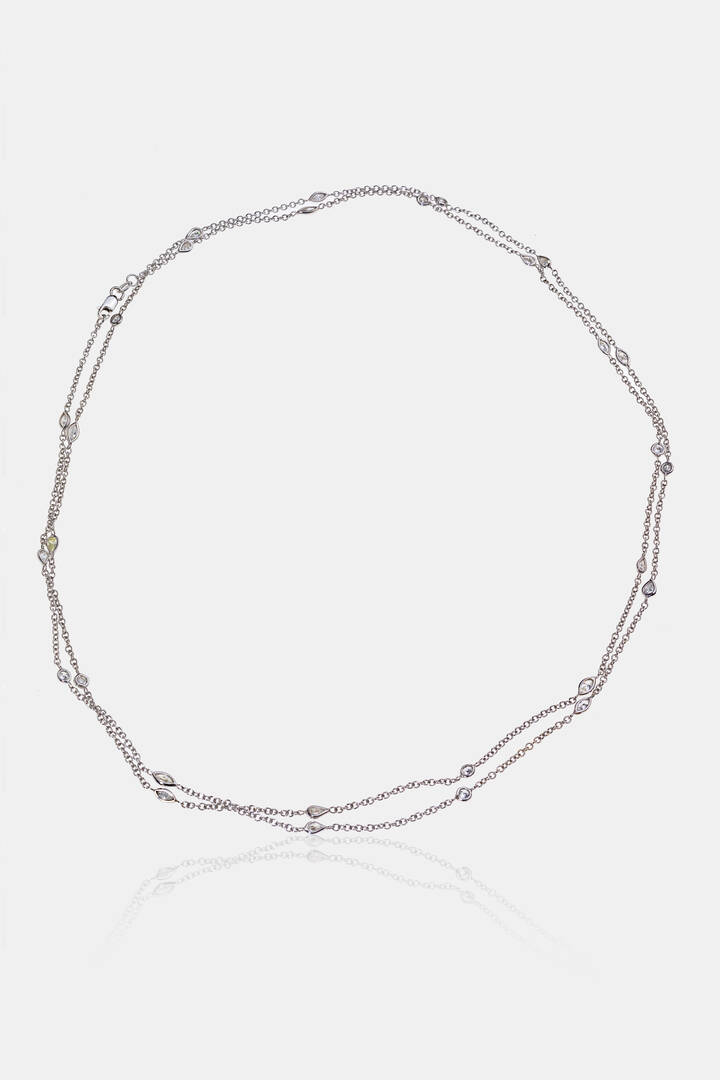 in oro bianco con maglia rolò alternata a diamanti taglio brillante, navette e goccia per totali ct 3 ca, colore G-H, purezza IF-VVS