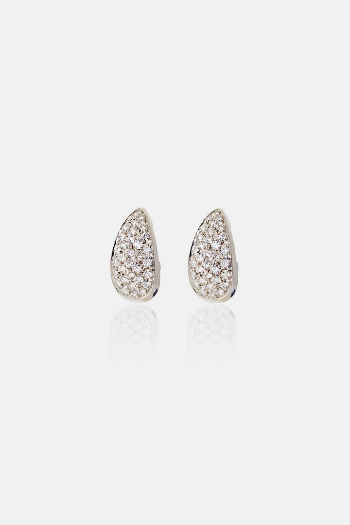 in oro bianco, a goccia, con pavé di diamanti taglio brillante per totali ct 1,0 ca, colore G. purezza VS