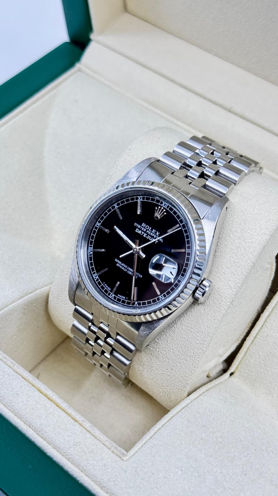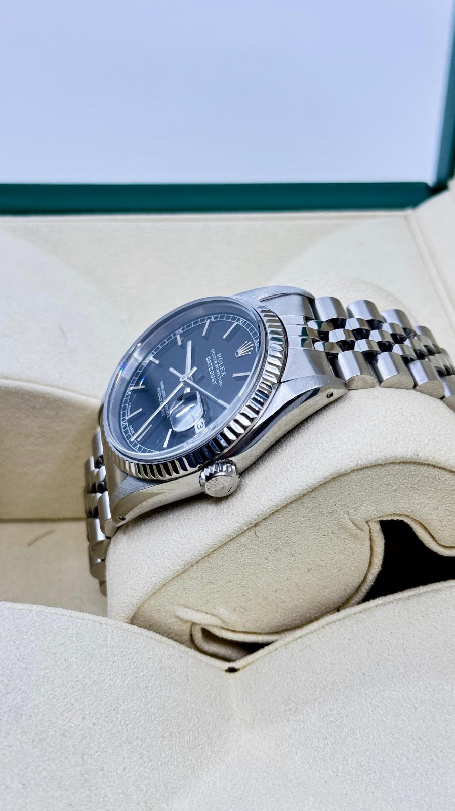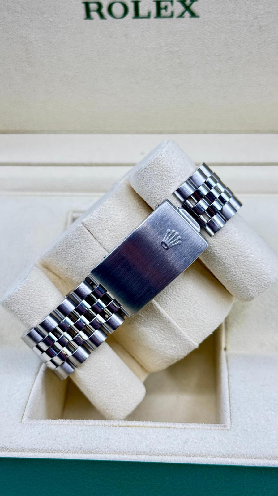 Marca Rolex Modello (Orologio) Datejust 36 Numero di referenza 16234 Carica Automatico Materiale della cassa Acciaio Materiale cinturino Acciaio Anno 1994 Condizione Usato (Ottimo) L'articolo presenta segni di usura lievi, come ad esempio graffi leggeri, ma non percepibili al tatto. documenti originali Rolex, no box, la scatola viene utilizzata solo per fotografie non è in vendita Carica Automatico Cassa Materiale della cassa Acciaio Diametro 36 mm Impermeabile 10 ATM Materiale lunetta Oro bianco Vetro Vetro zaffiro Cinturino Materiale cinturino Acciaio Colore cinturino Acciaio Chiusura Déployante Materiale chiusura Acciaio