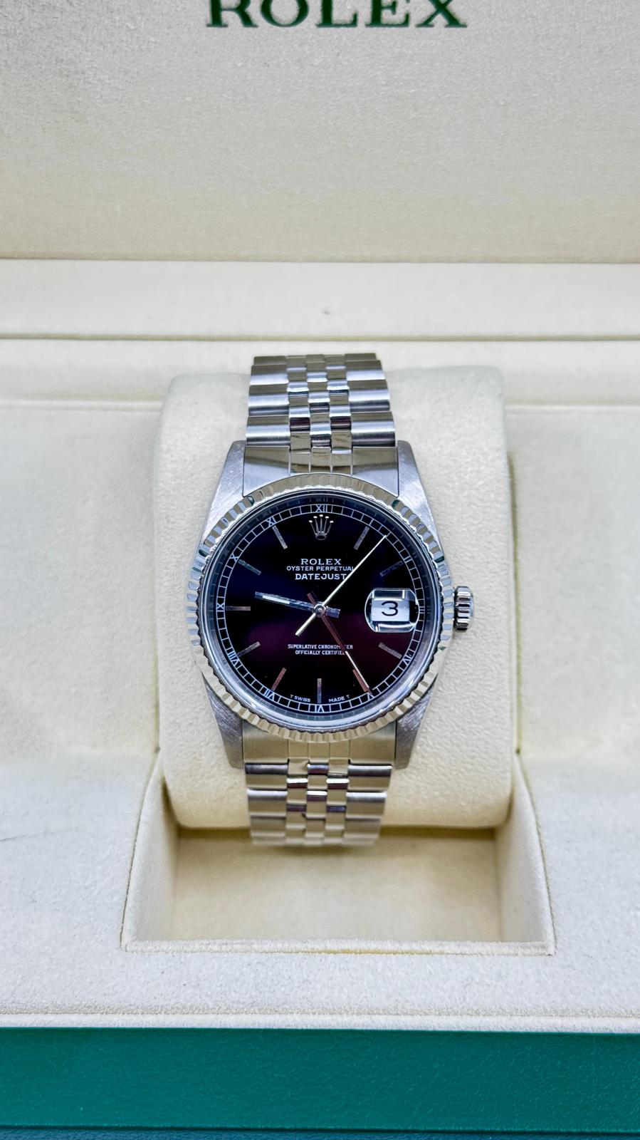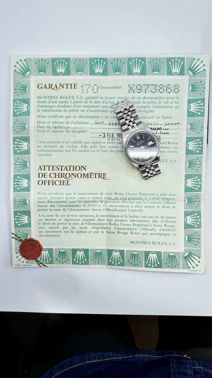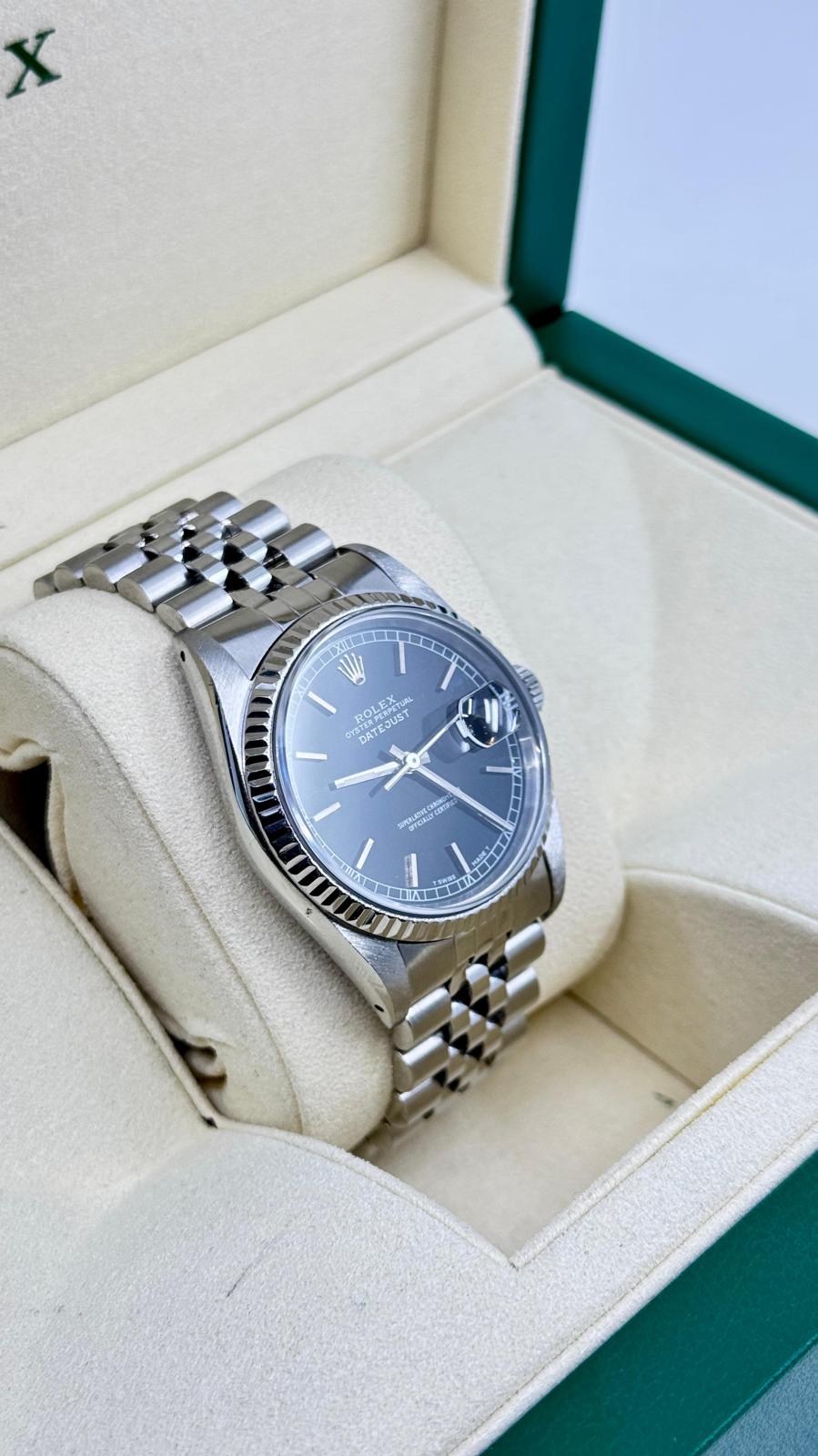 Marca Rolex Modello (Orologio) Datejust 36 Numero di referenza 16234 Carica Automatico Materiale della cassa Acciaio Materiale cinturino Acciaio Anno 1994 Condizione Usato (Ottimo) L'articolo presenta segni di usura lievi, come ad esempio graffi leggeri, ma non percepibili al tatto. documenti originali Rolex, no box, la scatola viene utilizzata solo per fotografie non è in vendita Carica Automatico Cassa Materiale della cassa Acciaio Diametro 36 mm Impermeabile 10 ATM Materiale lunetta Oro bianco Vetro Vetro zaffiro Cinturino Materiale cinturino Acciaio Colore cinturino Acciaio Chiusura Déployante Materiale chiusura Acciaio