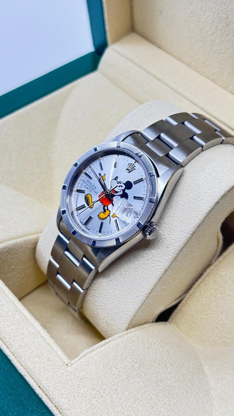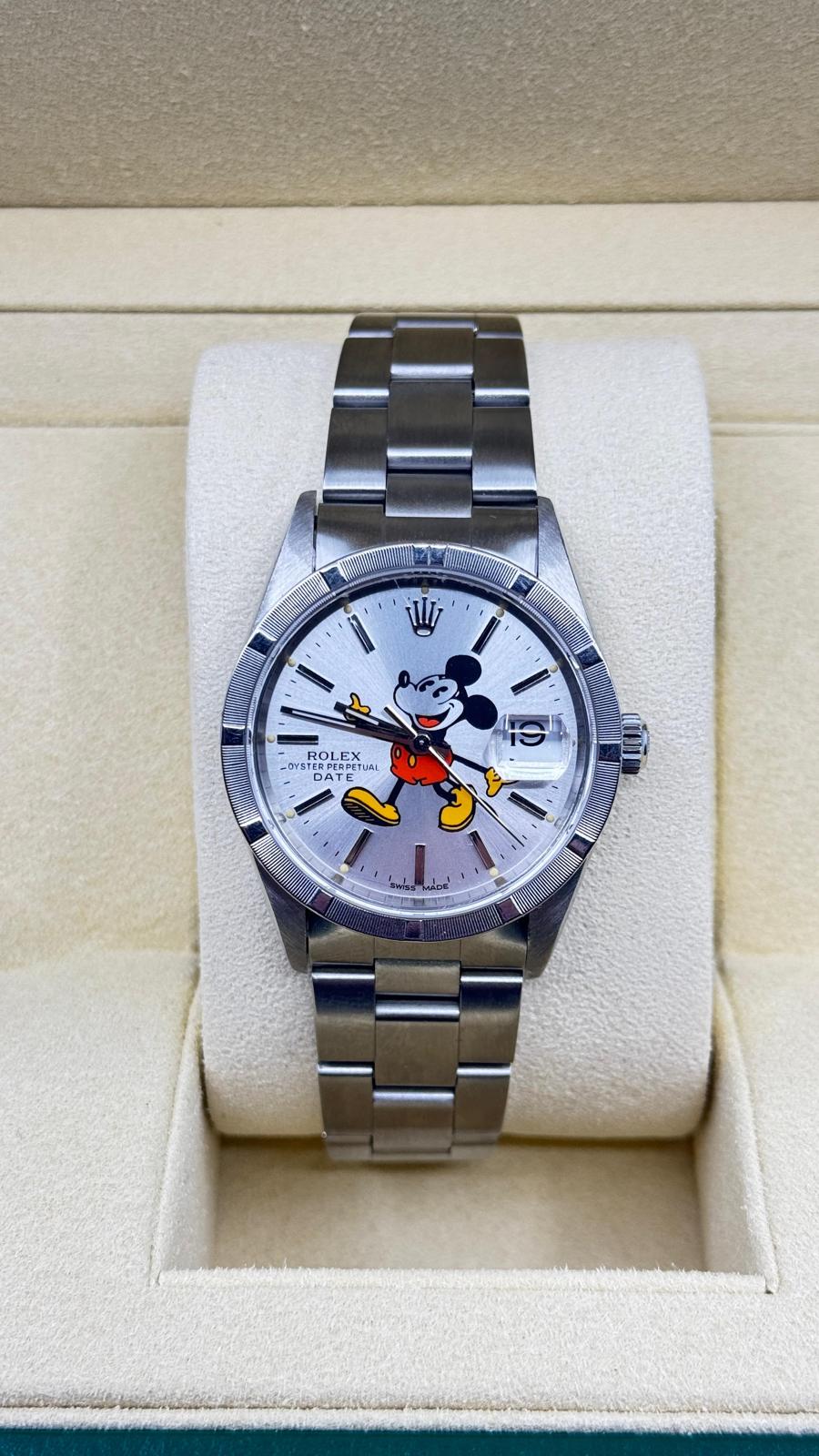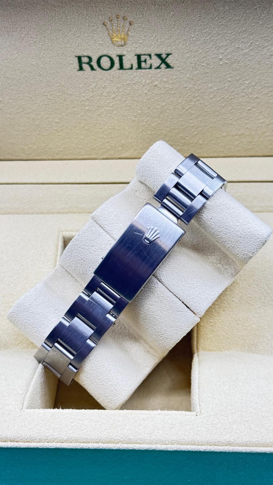 Marca Rolex Modello (Orologio) Oyster Perpetual Date Numero di referenza 15210 Carica Automatico Materiale della cassa Acciaio Materiale cinturino Acciaio Anno di produzione 2004 Quadrante aftermarket documenti originali, no box Carica Automatico Cassa Materiale della cassa Acciaio Diametro 34 mm Materiale lunetta Acciaio Vetro Vetro zaffiro Materiale cinturino Acciaio Chiusura Déployante Materiale chiusura Acciaio
