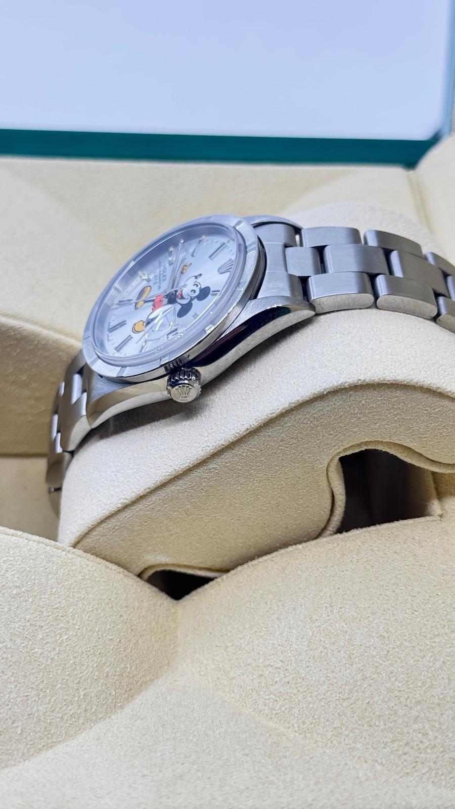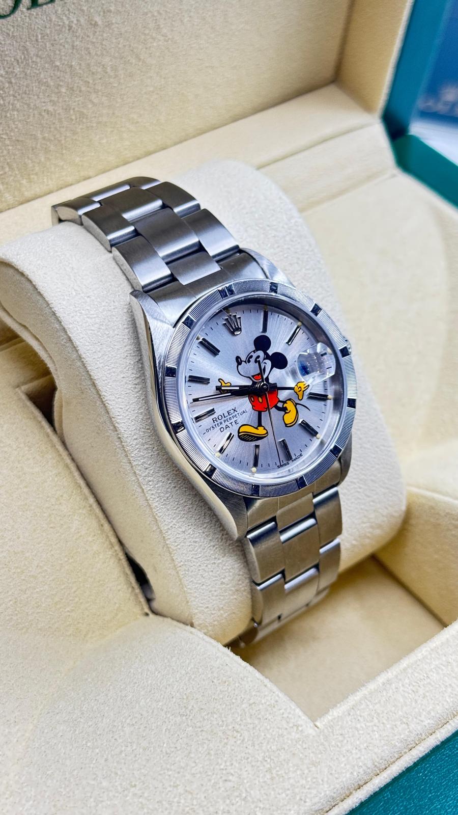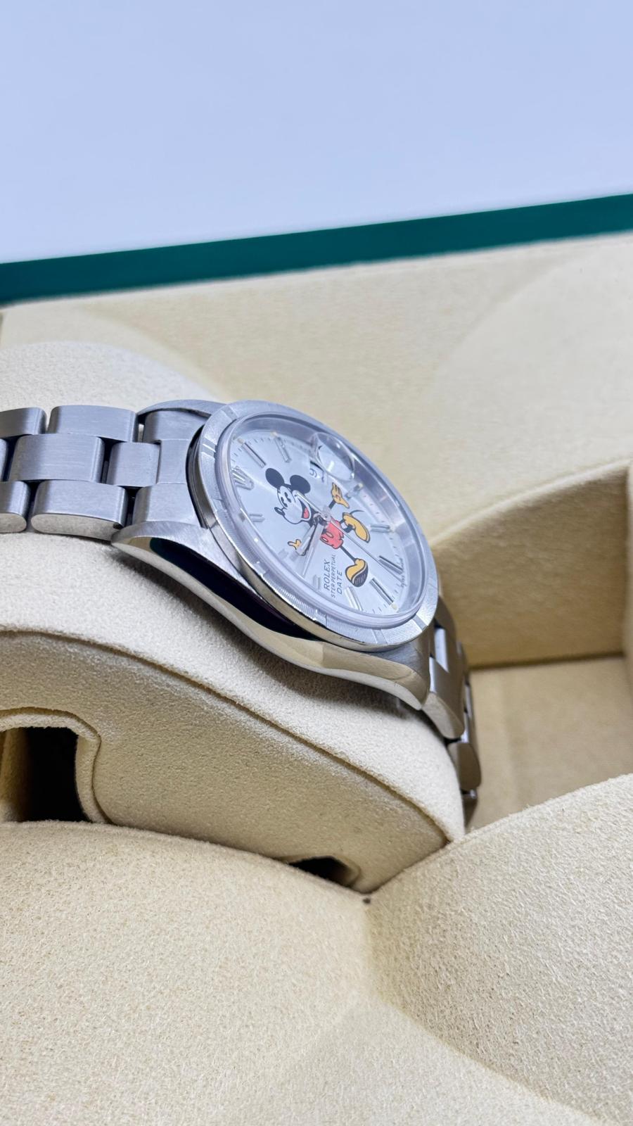 Marca Rolex Modello (Orologio) Oyster Perpetual Date Numero di referenza 15210 Carica Automatico Materiale della cassa Acciaio Materiale cinturino Acciaio Anno di produzione 2004 Quadrante aftermarket documenti originali, no box Carica Automatico Cassa Materiale della cassa Acciaio Diametro 34 mm Materiale lunetta Acciaio Vetro Vetro zaffiro Materiale cinturino Acciaio Chiusura Déployante Materiale chiusura Acciaio