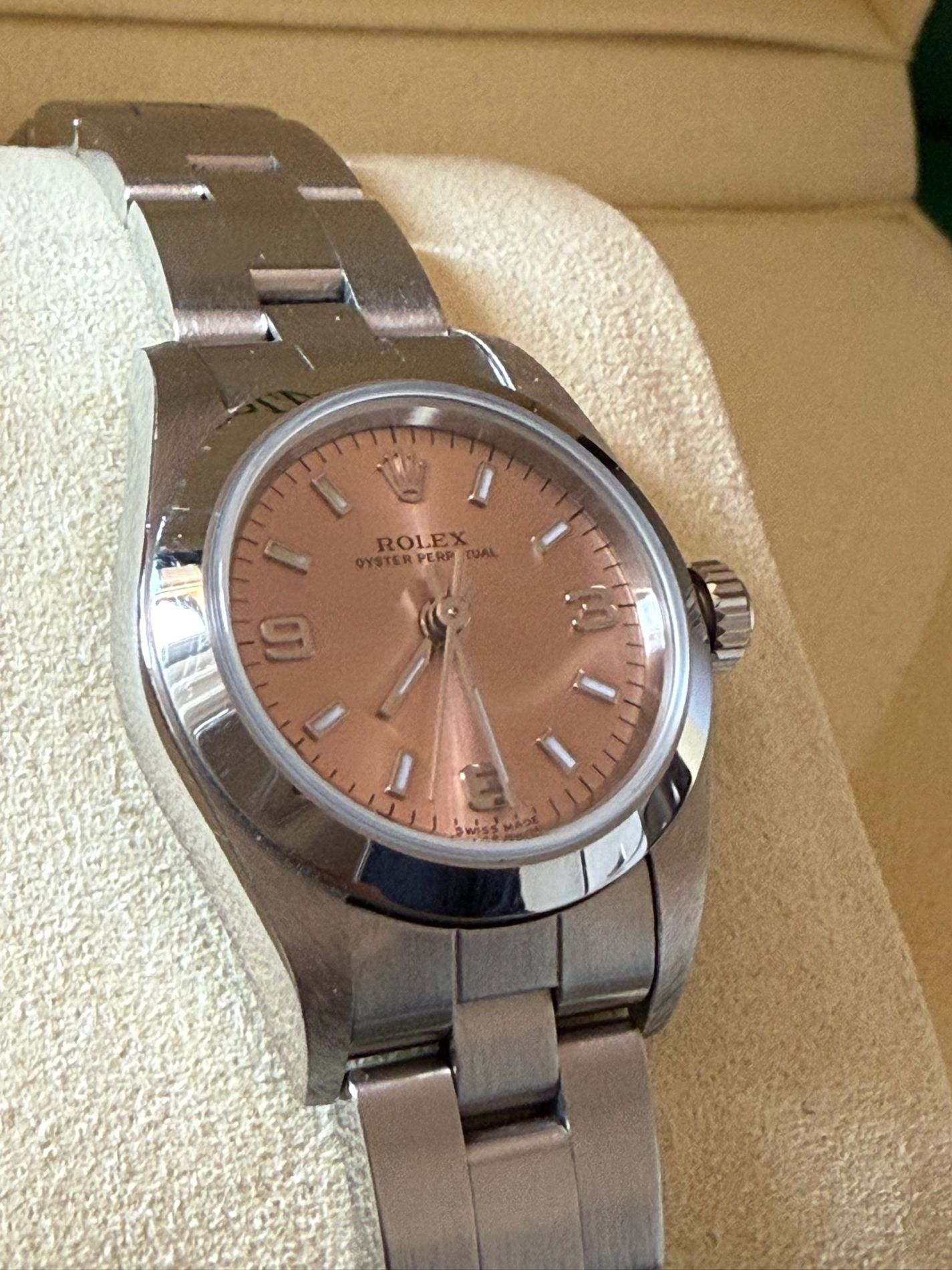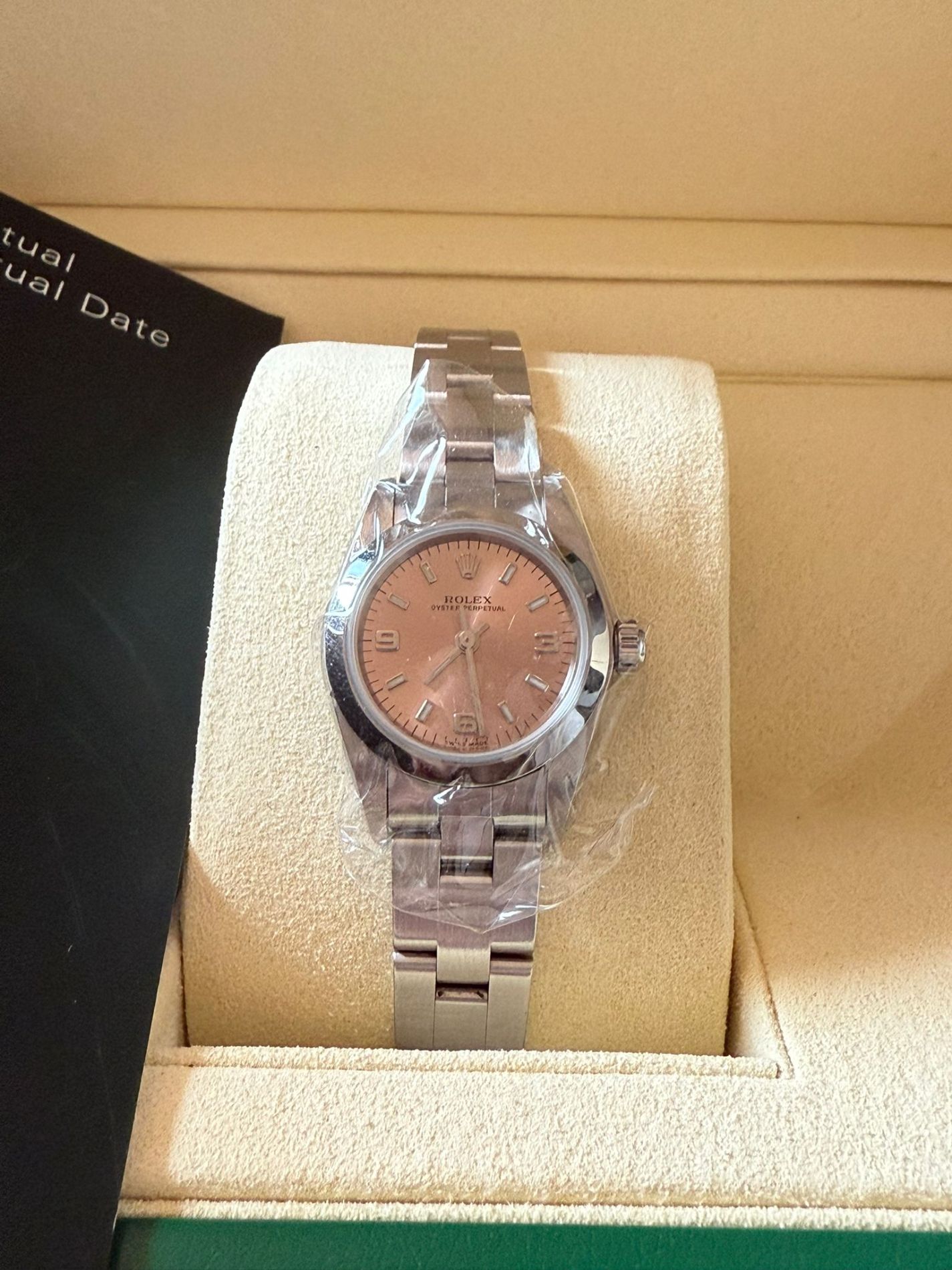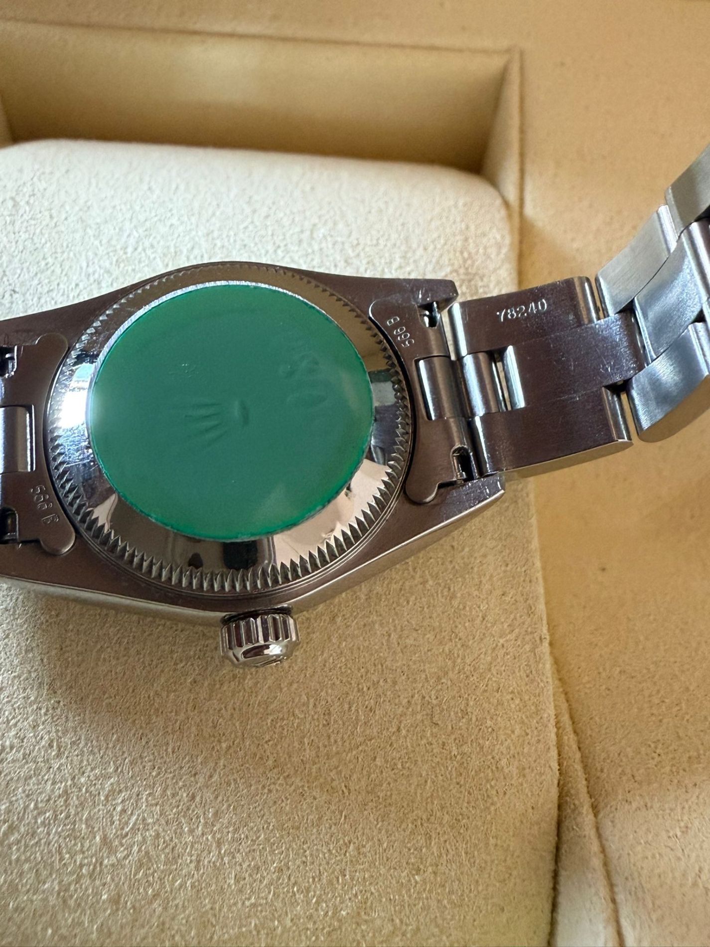 Marca Rolex Modello (Orologio) Oyster Perpetual Numero di referenza 76080 Carica Automatico Materiale della cassa Acciaio Materiale cinturino Acciaio Anno di produzione primi anni 2000 Condizione Usato (Ottimo) L'articolo presenta segni di usura lievi, come ad esempio graffi leggeri, ma non percepibili al tatto. Corredo Senza scatola originale, senza documenti originali Materiale della cassa Acciaio Diametro 26mm Materiale lunetta Acciaio Vetro Vetro zaffiro Cinturino Materiale cinturino Acciaio Colore cinturino Acciaio Chiusura Déployante Materiale chiusura Acciaio Garanzia di un anno del negozio