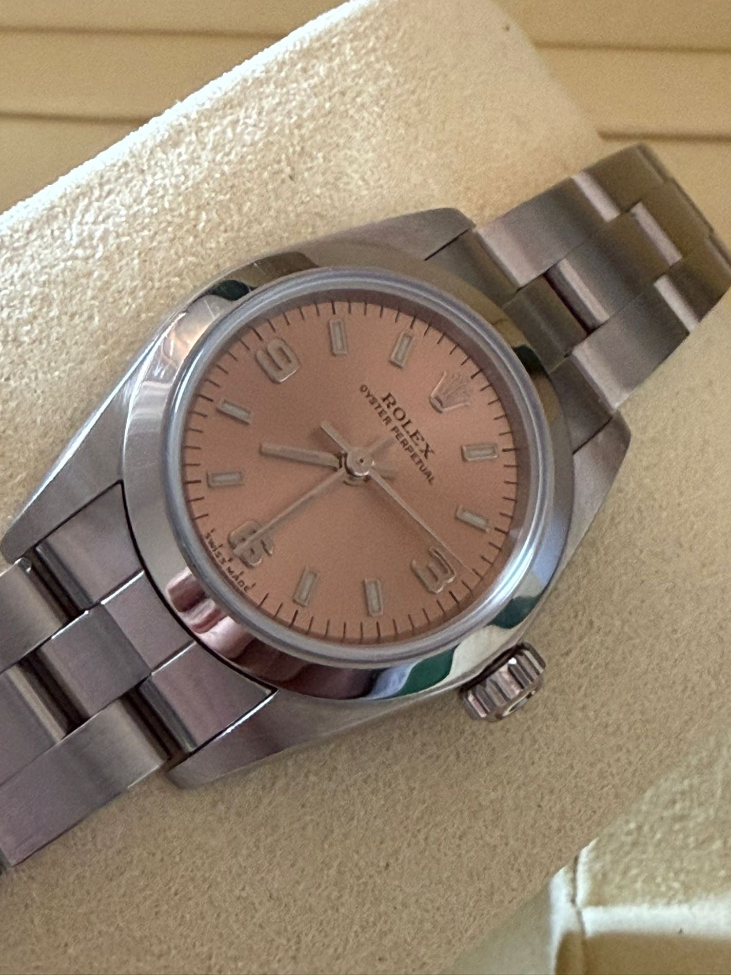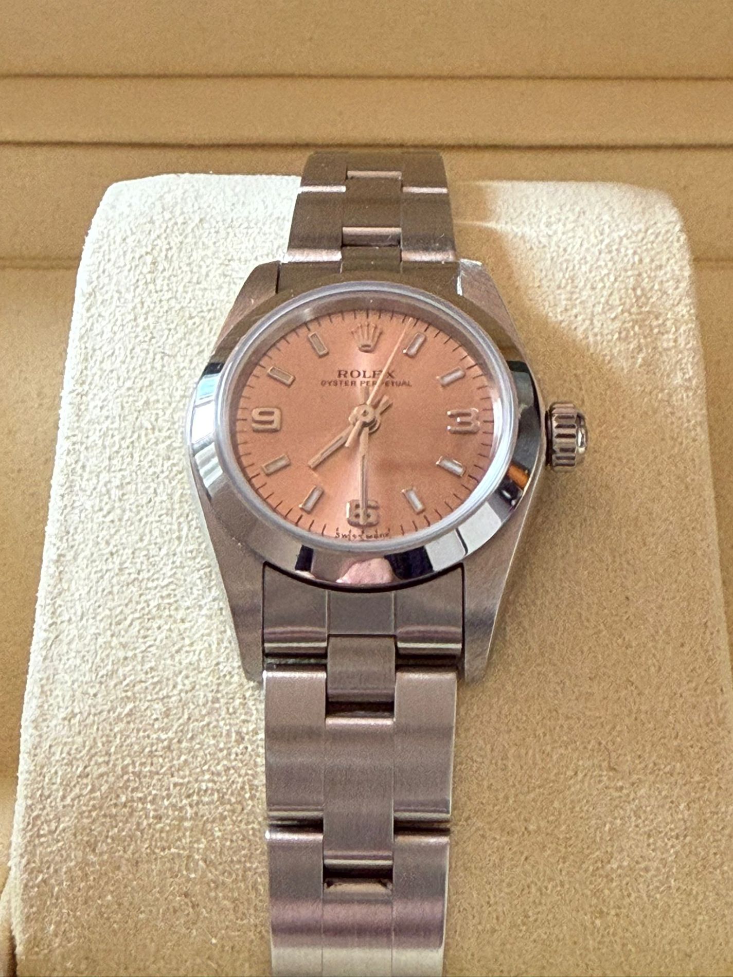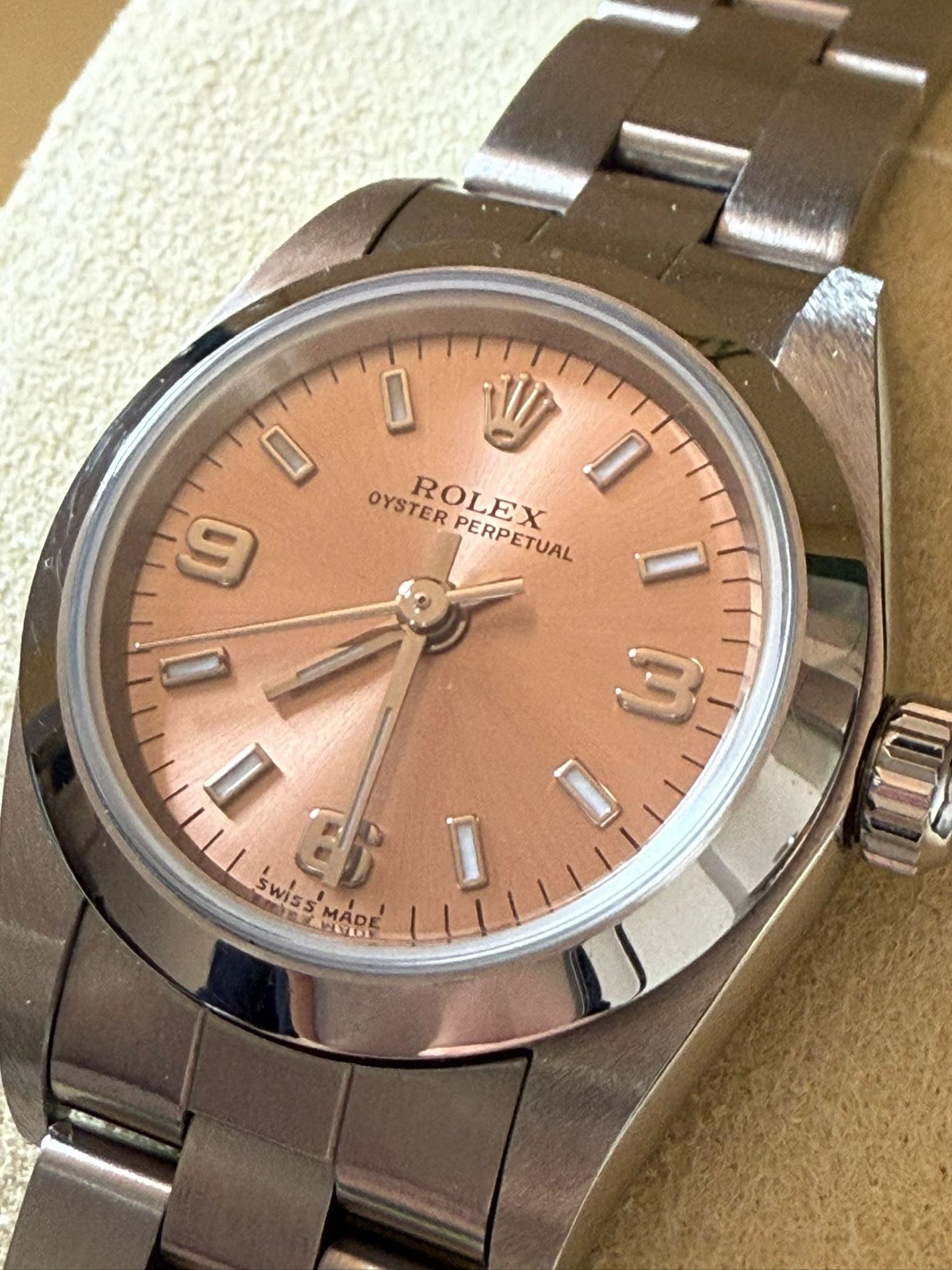 Marca Rolex Modello (Orologio) Oyster Perpetual Numero di referenza 76080 Carica Automatico Materiale della cassa Acciaio Materiale cinturino Acciaio Anno di produzione primi anni 2000 Condizione Usato (Ottimo) L'articolo presenta segni di usura lievi, come ad esempio graffi leggeri, ma non percepibili al tatto. Corredo Senza scatola originale, senza documenti originali Materiale della cassa Acciaio Diametro 26mm Materiale lunetta Acciaio Vetro Vetro zaffiro Cinturino Materiale cinturino Acciaio Colore cinturino Acciaio Chiusura Déployante Materiale chiusura Acciaio Garanzia di un anno del negozio