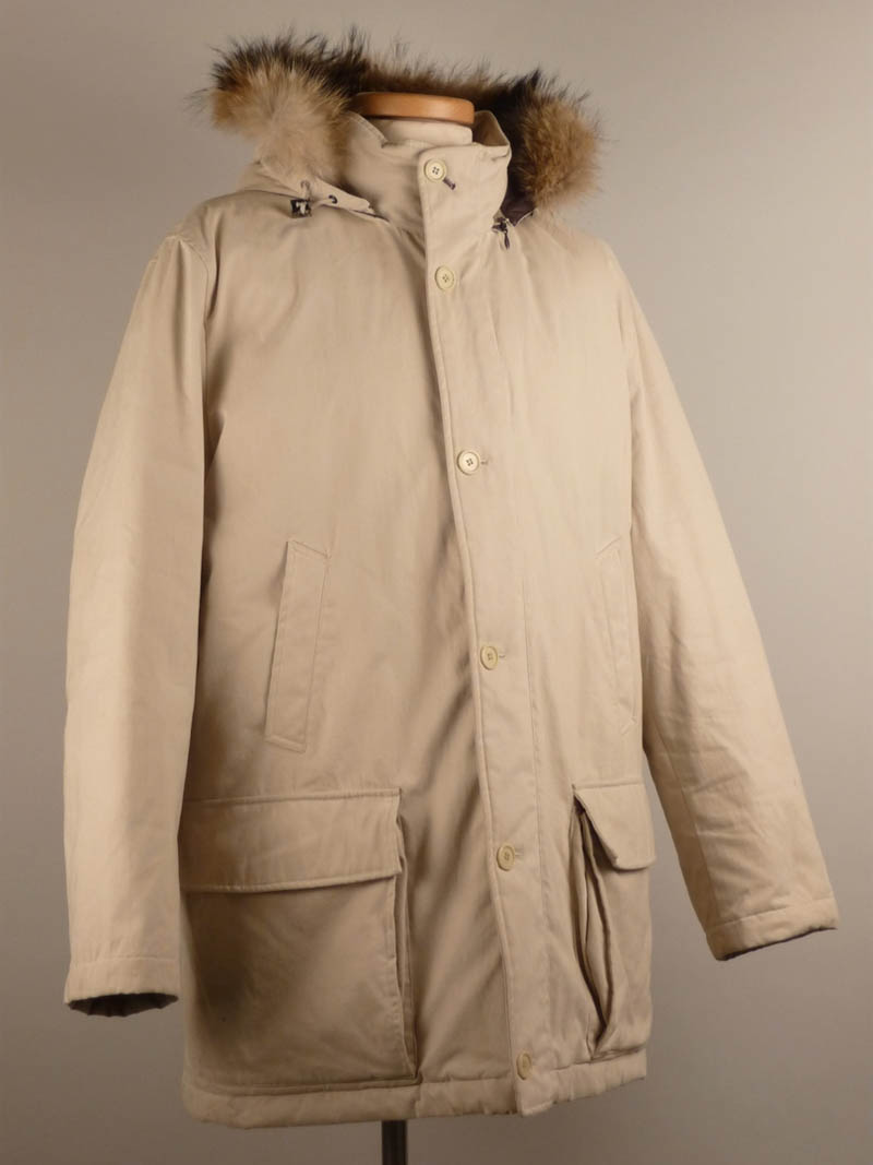 GIACCONE DA UOMO PANNA IN PIUME D'OCA - MEN'S BEIGE HEAVY JACKET IN GOOSE FEATHER Schneiders realizzato con cappuccio bordato di pelliccia removibile tg 54
