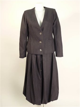 COMPLETO IN LANA GRIGIA - GREY WOOL SUIT Enrico Coveri, Anni Ottanta giacca e gonna pantalone con bottoni in madreperla, manica lunga, tg M circa