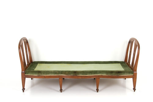Walnut daybed with eight tapered legs. 18th century. Minor defects. 84x193x80 cm approx. Dormeuse in noce con otto gambe rastremate. XVIII secolo. Lievi difetti. 84x193x80 cm ca.