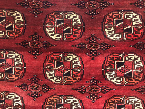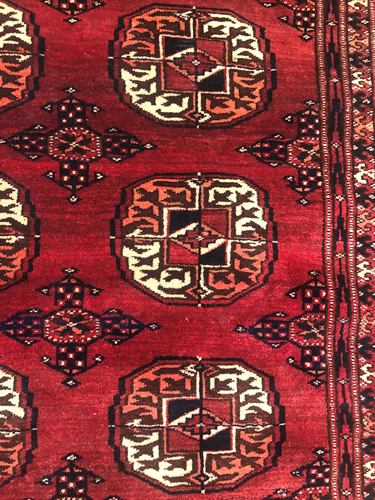 Tekkè carpet. Turkmen. Early 20th century. Excellent condition, four original sides. 260x205 cm approx. Tappeto Tekkè. Turcomanno. Inizi XX secolo. Eccellente stato di conservazione, quattro lati originali. 260x205 cm ca.