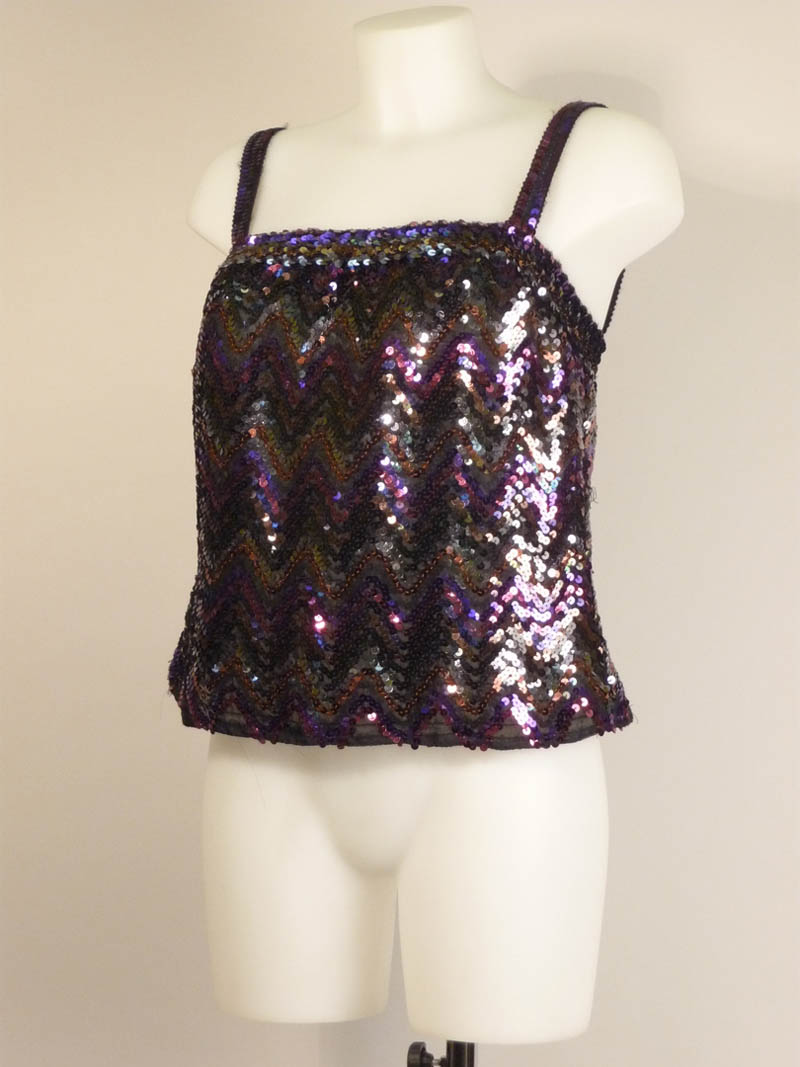TOP IN PAILLETTES VIOLA - PURPLE PAILLETTES TOP Three flags California modello corto tg M circa