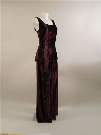 COMPLETO IN VELLUTO VIOLA - PURPLE VELVET SUIT Anni Ottanta canottiera e pantaloni a linea dritta tg M circa