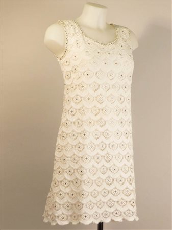 ABITO IN PIZZO BIANCO DI COTONE E STRASS - WHITE COTTON LACE DRESS modello a tubino impreziosito da dettagli di strass chiusura a cerniera posteriore tg M circa