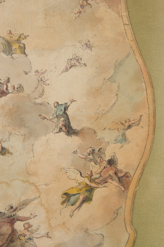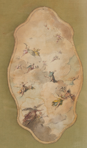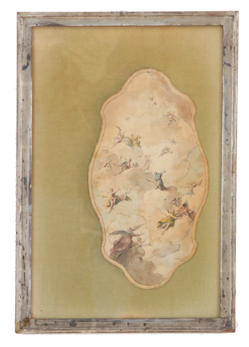 COSTANTINO CEDINI (Padova 1741-Venezia 1811). Sketch for fresco, watercolour and ink on paper depicting "TRINITY AND SAN ROCCO". Signed lower right. Framed. Defects. 31.5x17.5 cm approx. COSTANTINO CEDINI (Padova 1741-Venezia 1811). Bozzetto per affresco acquarello e china su carta raffigurante "TRINITA' E SAN ROCCO". Firmato in basso a destra. In cornice. Difetti. 31,5x17,5 cm ca.