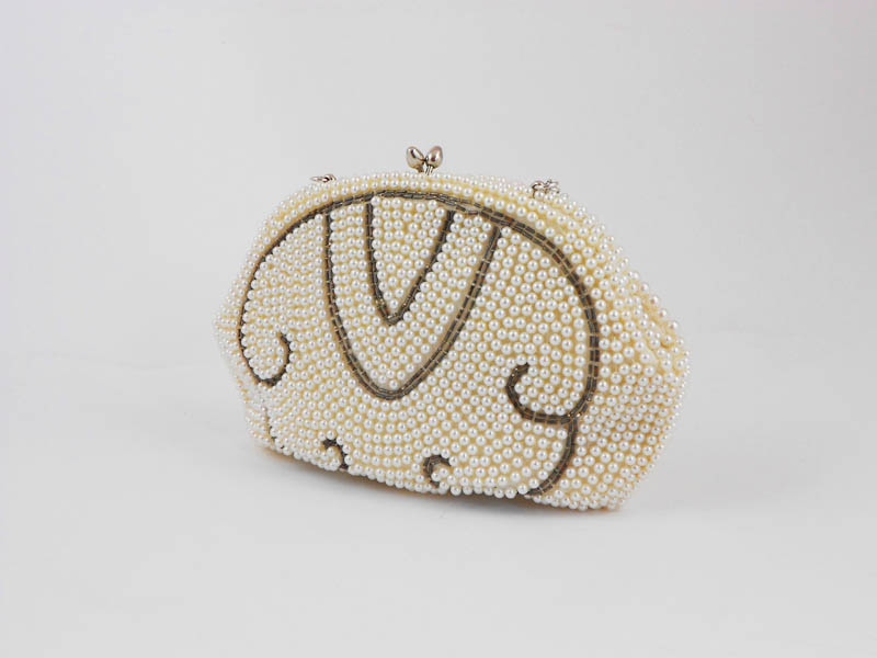 PICCOLA BORSETTA DA SERA IN PERLINE BIANCHE - LITTLE PEARLS BAG Anni Ottanta impreziosita da decori in jais argentati e piccola catenina in metallo