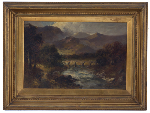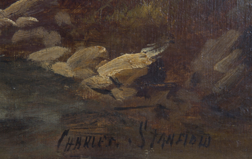 CHARLES STANFIELD (XIX-XX).Pair of oil paintings on canvas depicting "RIVER LANDSCAPES". Signed lower right. In a gilded frame. 41x62 cm approx. CHARLES STANFIELD (XIX-XX). Coppia di dipinti olio su tela raffiguranti "PAESAGGI FLUVIALI". Firmati in basso a destra. In cornice dorata. 41x62 cm ca.