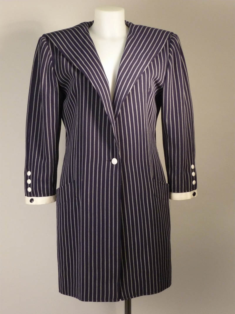 COMPOSÈ IN LANA BLU GESSATO - BLUE WOOL COMPOSÈ WITH PINSTRIPE Ungaro Parallele ampie reverse, polsini bianchi e gonna dritta tg 4