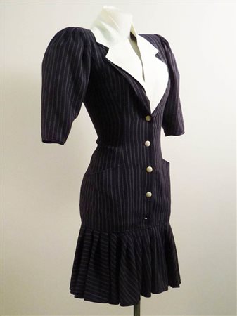 ABITO IN LANA BLU GESSATO - BLUE WOOL DRESS WITH WHITE PINSTRIPE Ungaro...