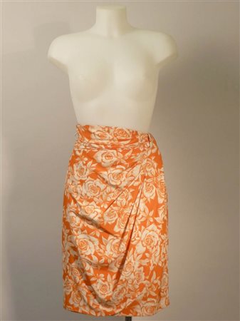 GONNA IN SETA A FANTASIA ARANCIO - SILK PATTERN SKIRT Ungaro Parallele, Anni...