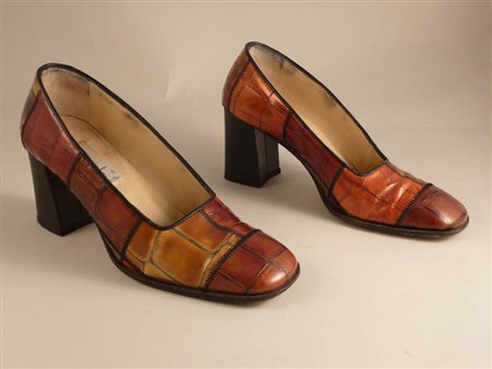 DECOLLETÈ IN VERNICE A PUNTA SQUADRATA - LEATHER VERNIS DECOLLETÈ WITH SQUARE TIP Braccialini Firenze realizzate con tipologie differenti di pelle e cuciture nere a zigzag, difetti tg 36