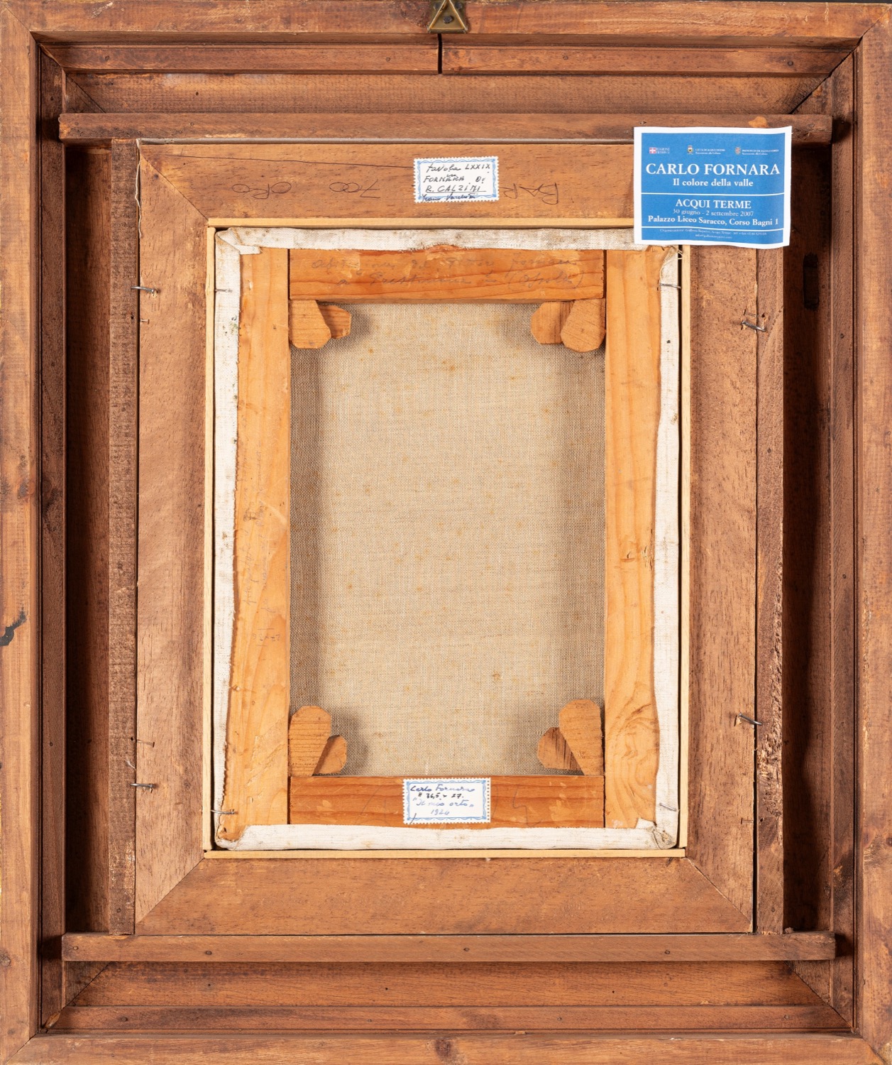 al retro, sul telaio, etichette della Collezione Franco Vercelotti ed etichetta della mostra Carlo Fornara. Il colore della valle, Acqui Terme, Palazzo Saracco (30 giugno-2 settembre 2007)