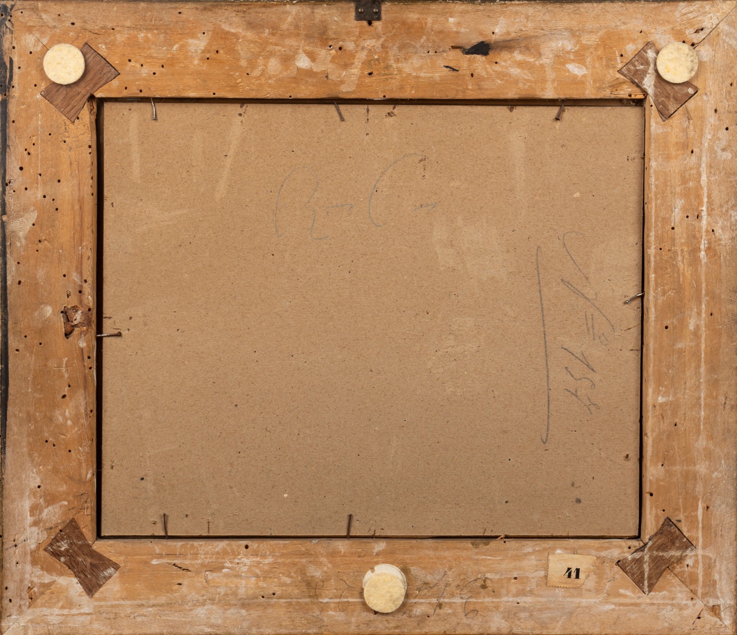 al retro, sulla cornice, antico cartellino a stampa con numero di riferimento (41).