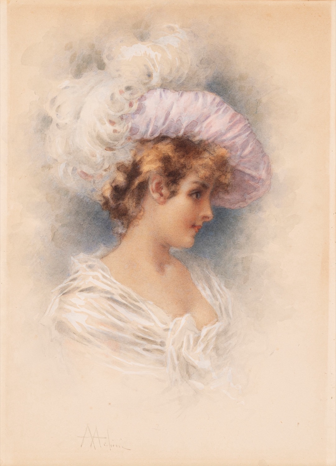 Angelo Achini (Milano 1850-1930) - Donna con cappello
